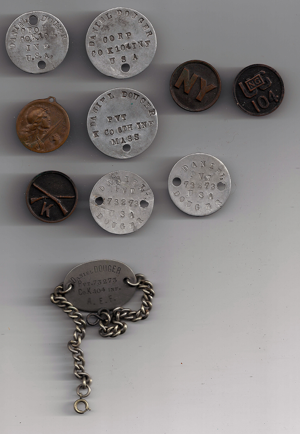 Scan of dogtags and metal buttons issued to my grandfather during his service.